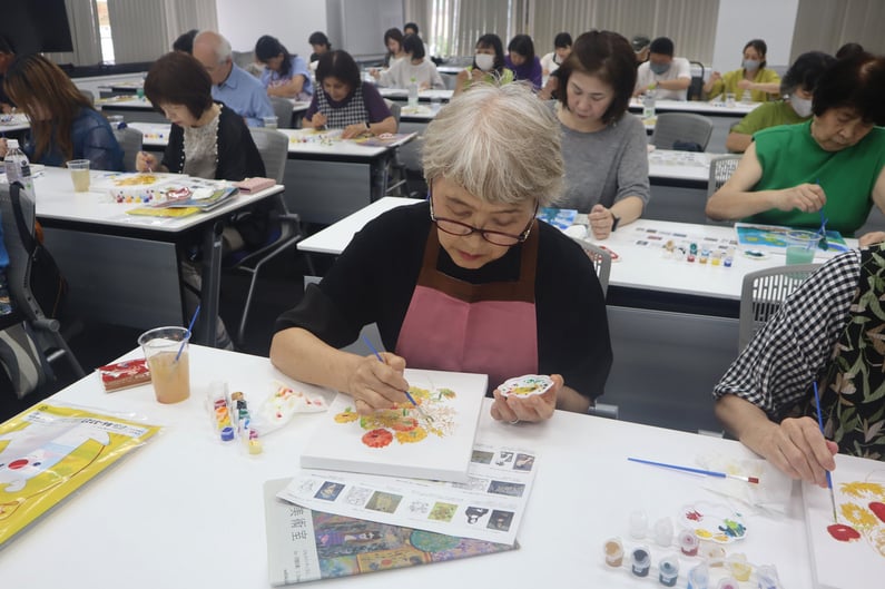「何十年ぶりに絵の具を使ってみたらとても楽しかった。先生もとても気さくで雰囲気が良かった。」