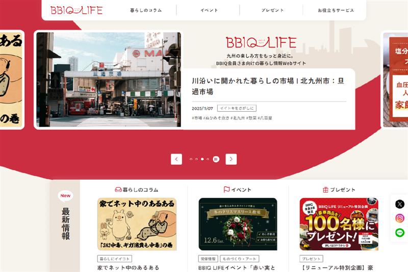 このリニューアルにより「BBIQ LIFE」は、九州に特化した生活に役立つ情報をはじめ、