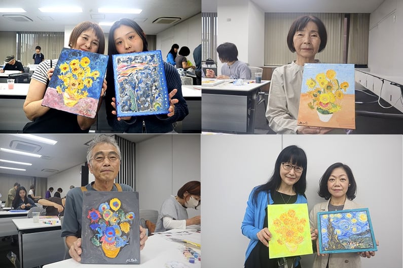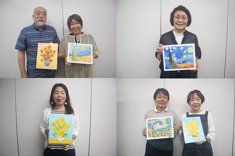 最後の仕上げを終えると、そこには鮮やかな『ひまわり』や幻想的な『星月夜』がずらり。個性豊かな世界にひとつだけの名画が完成!完成したばかりの作品を嬉しそうに眺める皆さまの表情は、とても輝いていました。