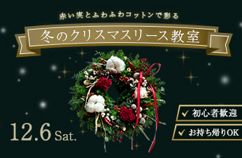 「赤い実とコットンで彩る冬のクリスマスリース教室」(12/6)の開催について2025年10月23日